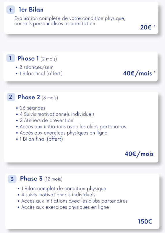 Si vous souhaitez (re)prendre une activité physique ou sportive avec un accompagnement particulier, si vous avez des besoins spécifiques de santé et/ou de bien-être, quel que soit votre âge, votre état de santé, nos experts répondrons à vos attentes et vos besoins.